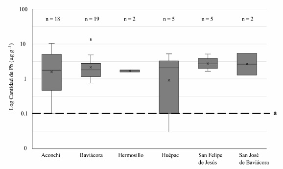 La mayoría de los estudios sobre intoxicación alimentaria con Pb en México se han realizado en regiones alfareras, pero no hay estudios sobre el riesgo de intoxicación con Pb en otras regiones, como las turísticas que utilizan mucho estos utensilios por ser parte del folklor mexicano como símbolo de complemento a la cocina regional. Tal es el caso de los poblados del río Sonora, que es un corredor turístico, actividad que fue afectada por un derrame de lixiviados en 2014 causando la dispersión de metales en las aguas superficiales y subterráneas, sedimentos y organismos que forman parte del ecosistema (Luque-Agraz et al., 2019). Después del derrame, se reportaron enriquecimientos de varios metales en agua y organismos a lo largo de la cuenca del río, que fueron asociados al derrame (Romo-Morales et al., 2020; SEMARNAT, 2023). Esto puede implicar que elementos como el Pb pueden estar siendo dispersados en esa región.