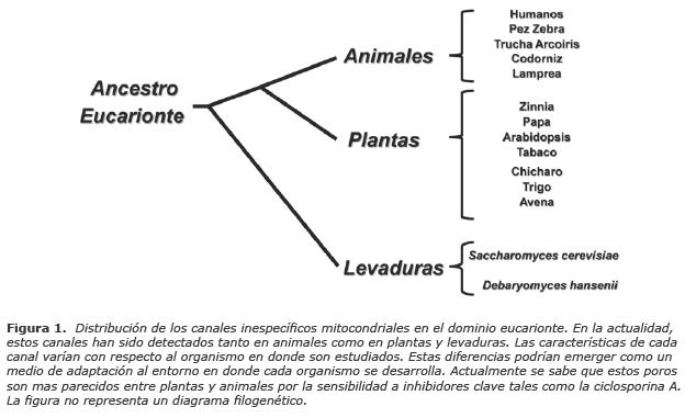 Al igual que en mitocondrias de mamíferos, las mitocondrias aisladas de la levadura del pan S. cerevisiae presentan un Poro de Transición el cual fue caracterizado hace 18 años por los grupos de Rial y Guérin (9,10). La caracterización del canal inespecífico en S. cerevisiae fue motivo de polémica entre ambos grupos, sin embargo, éstos sentaron las bases de su probable función, regulación y estructura. Entre estos descubrimientos destacan la inhibición del canal por fosfato, ADP y Mg2+ y su activación por restricción de fosfato y adición de ATP. Durante esos años, Pfeiffer propuso que este canal era un PTP de levaduras (yPTP) no sensible a Ciclosporina A, un inmunosupresor y potente inhibidor del PTP en mamíferos (11). Adicionalmente, Pfeiffer demostró que el yPTP presentaba dimensiones similares al PTP, lo cual sugería que ambas eran estructuras equivalentes. En este estudio se demostró que el yPTP no era inducido por Ca2+ a menos que se adicionara un ionóforo de Ca2+, demostrando que las mitocondrias de levadura carecen de un sistema uniportador del catión. Esto reubicó el estudio de la transición de la permeabilidad en levaduras y resaltó sus similitudes como un probable modelo para el estudio de patologías mitocondriales en mamíferos como las detectadas durante el DIR y distrofias musculares (12, 13). Es importante recalcar las limitaciones de este modelo. Por ser un organismo facultativo, S. cerevisiae manifiesta adaptaciones a la supresión del aporte de oxígeno que no presentan organismos eucariontes superiores y por lo tanto serían un mal ejemplo para el estudio del poro desencadenado por el DIR. Paradójicamente, el ser una levadura facultativa le otorga a S. cerevisiae ventajas sobre organismos superiores para el estudio de la fisiología mitocondrial (ver el párrafo siguiente).