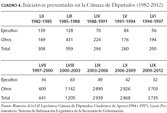 30 Otro indicador importante de cómo ha cambiado el comportamiento en cuanto a iniciativas presentadas y aprobadas es el que mide la contribución de cada actor al volumen total de las iniciativas aprobadas. Véase Nacif (2006). La conclusión es que la contribución de los partidos y legisladores es ahora mayor que la del Ejecutivo en la producción legislativa.