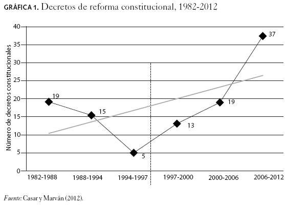 La serie de reformas político-electorales iniciadas en 1978 abrió la competencia electoral y rompió el cuasimonopolio que sobre los puestos de elección popular mantuvo el Partido Revolucionario Institucional (PRI) durante casi seis décadas. En un primer momento, la creciente pluralidad tuvo como efecto que las iniciativas de reforma constitucional no pudieran darse por sentadas. En 1988 el PRI perdió la mayoría calificada de dos terceras partes, y el presidente y su partido se vieron obligados a negociarlas al menos con otra fuerza política al interior del Congreso.