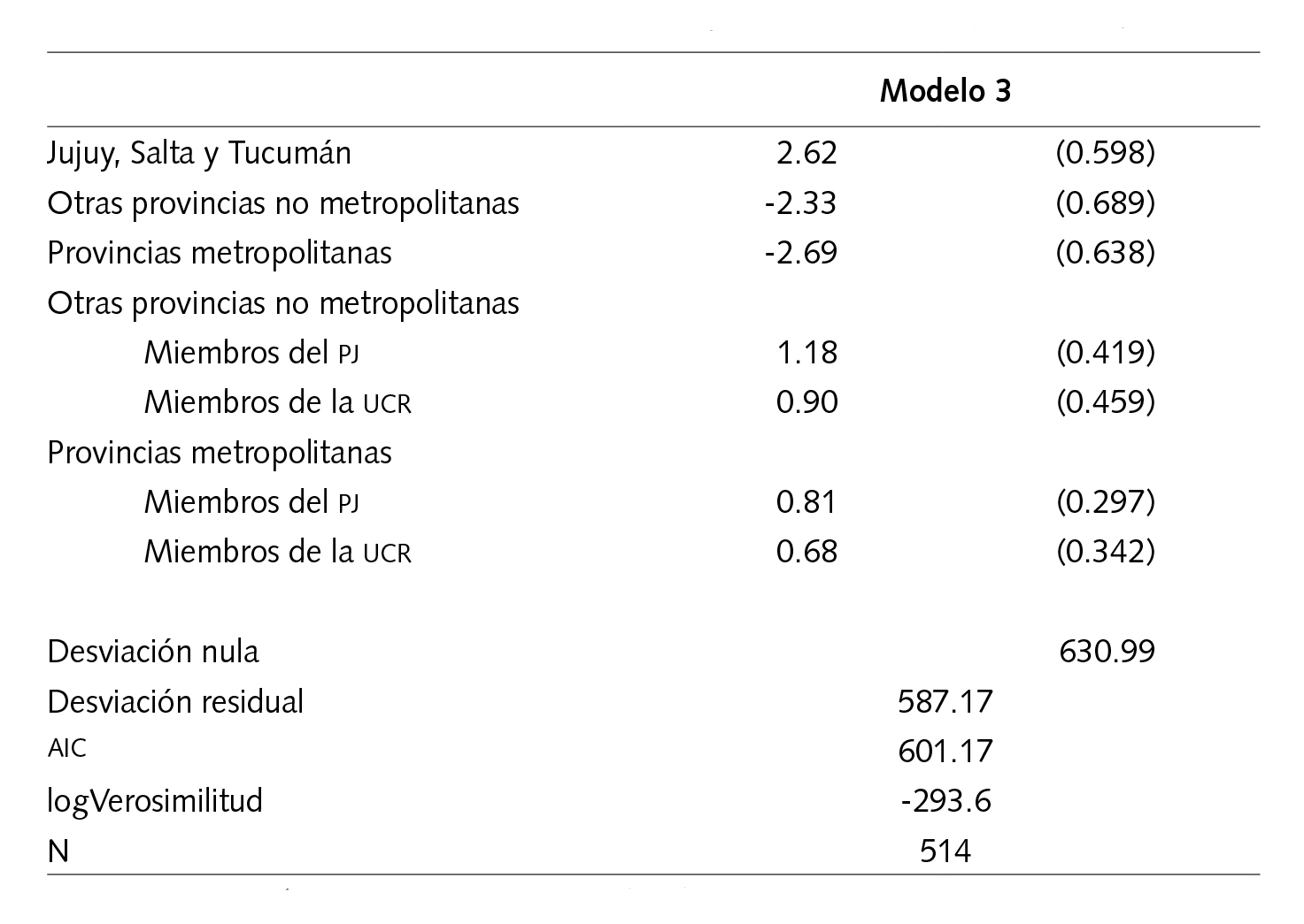Estos hallazgos encajan bien con las expectativas resumidas en la introducción. No sólo los diputados de las provincias no metropolitanas fueron más proclives a apoyar las anulaciones, sino que los diputados de los principales partidos nacionales mostraron una mucho mayor propensión a apoyar la anulación debido a su necesidad de mantener la cohesión partidista. El resultado también indica claramente que los intereses partidistas no pueden explicar por completo por qué los diputados noroccidentales apoyaron a la industria azucarera, aunque la filiación partidista parece haber influido en el voto de los diputados, miembros del mismo partido mostraron diferentes tasas de apoyo entre regiones. En lugar de pensar en el PJ y en la UCR como partidos unitarios, los resultados sugieren que, como mínimo, se puede agrupar a los miembros de cada partido en dos grupos: los de otras provincias no metropolitanas y los de provincias metropolitanas.