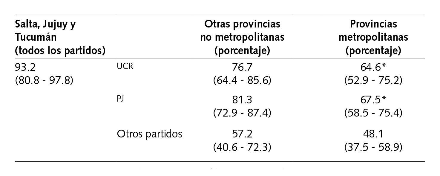 Dos condiciones permitieron que los legisladores del noroeste enlistaran la cooperación de sus contrapartes metropolitanas. Primero, los partidos nacionales argentinos se pueden percibir como la unión de una coalición electoral de metropolitanos y no metropolitanos (Gibson, 1997). El partido en el poder debe mantener la coalición para poder gobernar; esto genera fuertes incentivos electorales para que los legisladores apoyen el mantenimiento de la coalición incluso cuando esto vaya contra los intereses de sus electores y contra la posición política del Ejecutivo. Segundo, la capacidad de un pequeño grupo de legisladores del partido mayoritario de bloquear la promulgación de leyes y frenar una agenda legislativa más amplia otorga a estos miembros un poder político significativo dentro del proceso de diseño de políticas públicas (Holler, 1982).