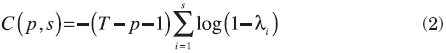 donde T es el número de observaciones, p es el número de rezagos del Vector Autoregresivo (VAR) en niveles, s es el número de correlaciones canónicas al cuadrado iguales a cero que se está sometiendo a prueba, y λi es la i-ésima correlación canónica al cuadrado más pequeña entre las variables del sistema y su historia relevante. Tal estadístico se distribuye ji-cuadrada con s2+snp+sr-sn grados de libertad. Siguiendo la notación convencional, n es el número de variables en el sistema y r representa el número de vectores de cointegración.