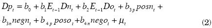 Following Cover's (1992) suggestions, positive and negative shocks to demand growth are defined for the joint estimation as follows: