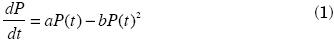 en donde P es la población y a y b son constantes no negativas que representan, respectivamente, las tasas medias de natalidad y mortalidad. De acuerdo con (1), la población crece de manera exponencial según la trayectoria marcada por: