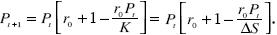 . 28 La ecuación resultante es muy parecida a la logística Pt+1 = r0 Pt [1Pt ], salvo por el hecho de que mientras esta última depende sólo de r0, aquella es una función de K y r0. La diferencia es trivial si, como suponemos nosotros, se considera a K fija para ciertos valores de r0, ya que en ese caso la ecuación malthusiana podría tratarse como una función parametrizada de la familia logística.29 De no ser así, la incorporación de K modificaría la naturaleza y la estabilidad de los puntos fijos de la ecuación logística original, y haría el análisis difícil de interpretar en términos del modelo de Malthus.