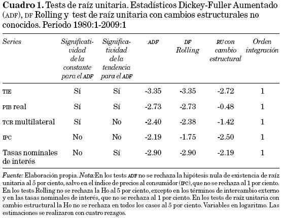 16 Estos autores utilizan una variable fiscal en lugar del tipo de cambio real, como en los trabajos de Thomas (1997), Clarida y Gali (1994), y Cerra y Saxena (2000).