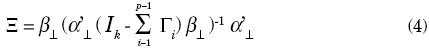 Sea la forma general de un modelo de VEC, de dimensión p: