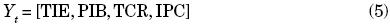 El vector de variables Yt podría indicarse como: