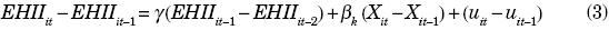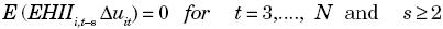 That is, lagged levels of EHIIitare uncorrelated with the error term in first differences; the method uses lagged endogenous variables as instruments to control for endogeneity of the lagged dependent variable, reflected in the correlation between this variable and the error term in the transformed equation. The resulting GMM estimator is known as the difference estimator.