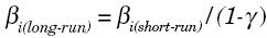 Tables 2 to 6 (3,4,5)incorporate short-run and long-run parameters. following the adaptive expectations hypothesis, first popularized by Cagan (1956) and Friedman (1957), we can interpret the short-run variation on inequality as the increase, sustained during one period only, in the current or observed value of the explanatory variables, times the magnitude of the corresponding short-run parameters. But if the increase in the explanatory variables is sustained over time, then the long-run (or equilibrium) inequality function eventually comprises long-run parameters, which are calculated as follows: