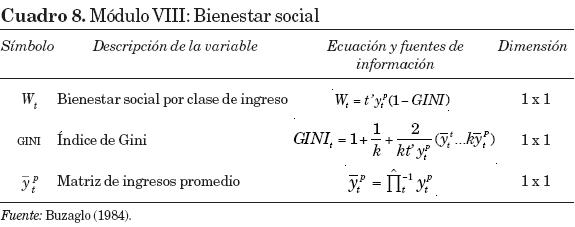 Finalmente, el diagrama causal presenta variables matriciales, algebraicas y valores, por lo que la estimación del modelo intersectorial dinámico requiere un tratamiento muy detallado de los datos, pues se necesita información no siempre disponible, al menos en los términos, clasificaciones y nomenclaturas utilizadas en el esquema de la contabilidad social. En el anexo se muestran los datos necesarios para la construcción del modelo dinámico.