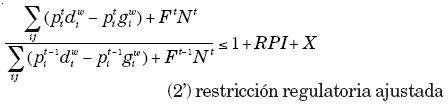 i. Dada la existencia de una red con información de precios históricos, el regulador plantea la restricción de precios en una tarifa en dos partes.