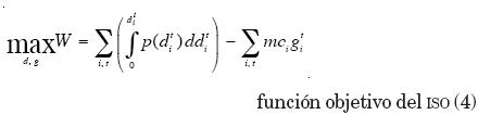 12 Este modelo se construye como un benchmark para evaluar numéricamente la convergencia de propiedades de bienestar del mecanismo HRV. El ISO maximiza el bienestar, sujeto a las restricciones (5), (6) y (7) del problema, bajo: