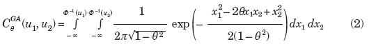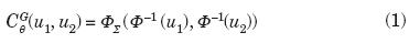 where θ is the correlation coefficient. When θ= 0 it describes the independence copula, while for θ = 1 describes the comonotonicity copula, and for θ = -1 the countermonotonicity copula.
