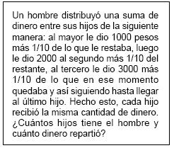 Es decir, el hombre repartió 81 000 pesos, tenía nueve hijos y cada uno de ellos recibió 9000 pesos.