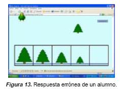 La Figura 12 ilustra una actividad del tutorial sobre seriación simple (ordenar de mayor a menor) y la Figura 13 muestra la respuesta de un alumno que cometió el error mencionado.