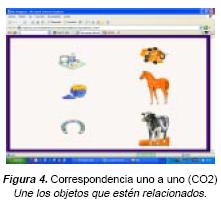 CO2. Asociar dos conjuntos de objetos con una relación que no implique igualdad (los objetos no son iguales y es necesario hallar el nexo que los une; por ejemplo, "caballo con herradura" o "vaca con leche"), como ilustra la Figura 4.