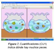 Con los Cuantificadores planteamos actividades en las que las propiedades de los objetos eran fácilmente perceptibles (CU1) y otras con propiedades no evidentes visualmente, aunque con objetos familiares para los alumnos, como juguetes, alimentos o animales (CU2). El comportamiento en ambos tipos de actividades fue semejante (63% y 61% de aciertos, respectivamente).