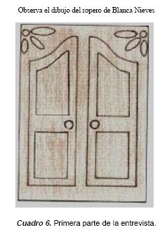Paulina tomó las medidas de cada parte que conformaba el ropero de Blanca Nieves y las duplicó para hacer el dibujo solicitado (Cuadro 9). Después de que Paulina leyó en voz alta las indicaciones, la entrevistadora le formuló algunas preguntas: