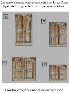 Paulina no hizo operaciones por escrito, sino mentalmente, y en voz alta duplicó los valores de las magnitudes, lo cual indica su habilidad en el cálculo aritmético y en el uso del operador natural (× 2). Lo que dijo Paulina en la entrevista, respecto a que las dimensiones lineales del ropero de Blanca Nieves son la mitad del grande o que las dimensiones lineales de éste corresponden al doble de las de Blanca Nieves, evidenció una claridad en el manejo de la reciprocidad, lo cual coincide con lo que señala Piaget (1978a y b) en cuanto a tal modalidad de reversibilidad. El dominio de la reciprocidad muestra que Paulina tiene un pensamiento con mayor grado de abstracción.
