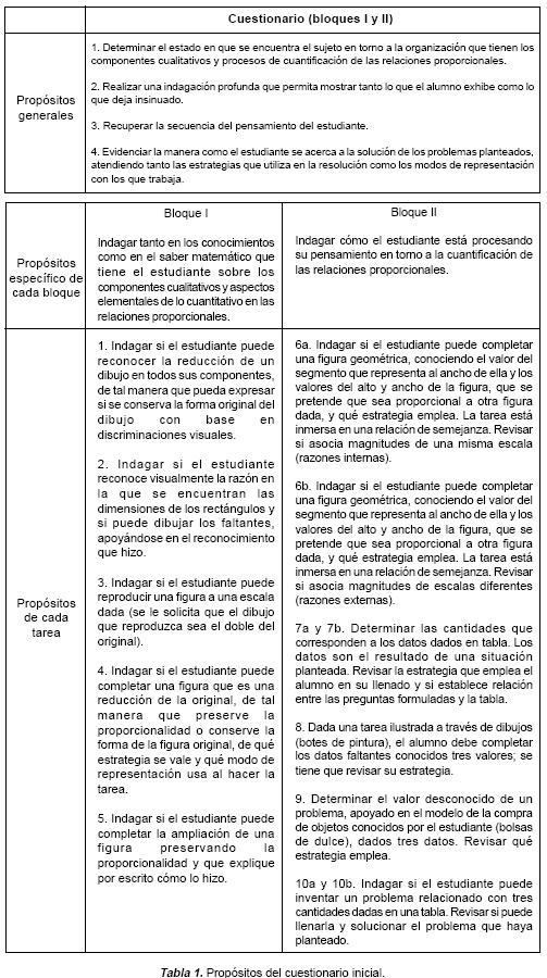 Para indagar en la manifestación del pensamiento cualitativo, requerimos primeramente de aplicar el cuestionario, que involucró tareas donde no se utilizaron cantidades para su solución, como actividades de comparación, lo cual le permitió a Paulina identificar relaciones de semejanza entre figuras. Consideramos pertinente incluir el cuestionario inicial siendo el mismo que el final para tener mayor claridad en el seguimiento de la metodología (Tabla 1).