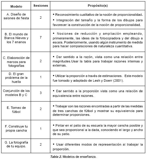 La Tabla 2 presenta los modelos de enseñanza que utilizamos y sus propósitos.
