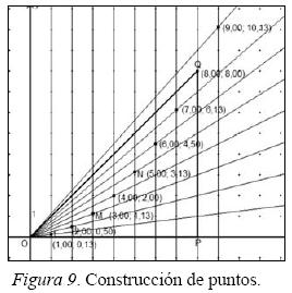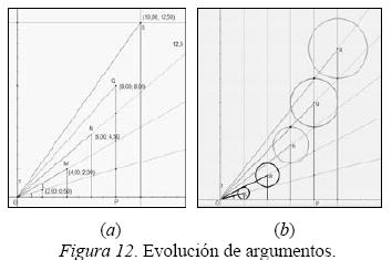 Requerirles abstraerse de la información que Cabri les ofrece, y argumentar sobre cómo determinar más puntos y describir la curva en juego, les exige por ejemplo extender la construcción geométrica o apoyarse en el modelo numérico, o quizás en éste para determinar el modelo algebraico dándonos la pauta que la riqueza argumentativa y por ende de sensibilizarse sobre ciertas ideas covariacionales depende fuertemente de la construcción de su propia red de modelos.