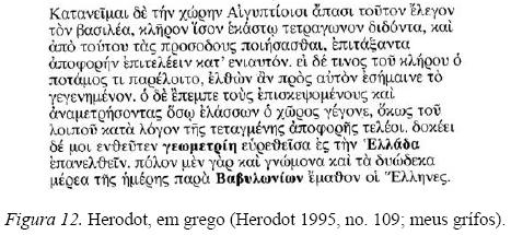 Porém, não a fim de que vocês leiam o trecho, mas principalmente a fim de que reconheçam aqui a palavra γεοµετρια e também de que se fala da Grécia 'Eλλαδα e sobre os Babilônios.