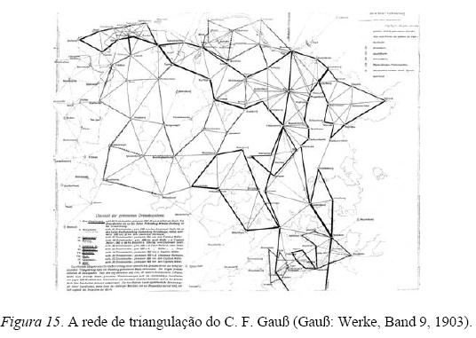 Assim, enfim eu cheguei ao ponto onde de novo entra um Gauß. Devido ao duplo significado de 'geometria', é que encontramos novamente o Gauß I nesta área de atividades para matemáticos, depois de iniciada a Revolução Francesa. Foi Gauß mesmo quem propôs em 1818 ao governo do seu estado, o reinado de Hanover, efetuar uma triangulação para um levantamento geodésico de todo o território. Com efeito, o governo ordenou Gauß a dirigir o projeto, em que ele investiu uma energia enorme para realizálo. Até 1837, Gauß dedicou todos os meses do verão ao processo de triangulação.
