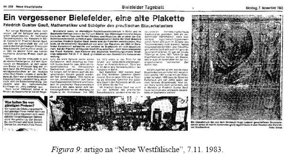 Eu achei, no entanto, a solução definitiva um pouco mais tarde, em novembro de 1983 quando o jornal de Bielefeld, Neue Westfälische, publicou um artigo comemorando um antigo cidadão chamado no artigo: "der vergessene Bielefelder", "o esquecido de Bielefeld". Para minha surpresa, o esquecido foi justamente o F. G. Gauß que revelouse ser chamado Friedrich Gustav Gauß e sendo um irmão mais velho do Friedrich Gauß: (Figura 9)