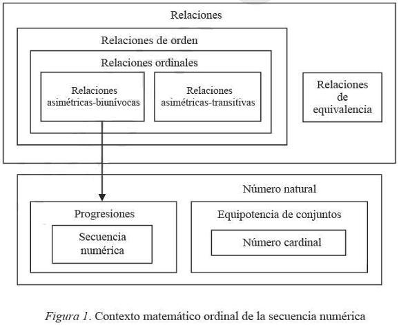 En esta diversidad de paradigmas, el marco teórico que consideramos es el que ofrece la figura 1, pues explica el contexto matemático donde enmarcamos la secuencia numérica en función de las relaciones ordinales.