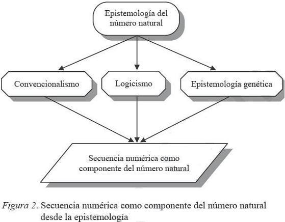 Dicha cuestión la abordaremos en el sentido planteado por Grize, y buscaremos en las principales corrientes epistemológicas el entendimiento de la secuencia numérica como una componente del número natural, siguiendo el esquema de la figura 2.