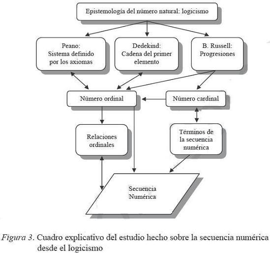 Existen corrientes epistemológicas que consideran a las relaciones lógicas ordinales del número natural como el origen de toda la construcción matemática (Dedekind, 1988; Peano, 1979; Russell, 1982).
