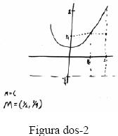 Entrevistador: Entonces, los puntos M que están proponiendo son los que están sobre el eje x. [Figura dos1]. Ahora, qué pasa si queremos calcular puntos M, pero que no estén sobre la recta (salvo el origen), y consideremos que la distancia de un punto a una recta es aquella que cae perpendicular a la recta y es la mínima. Por tanto, ¿cómo encuentro ahora los valores de M?