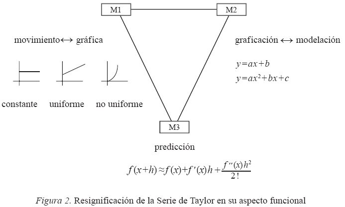 En este sentido, la problemática trata la resignificación de la Serie de Taylor (ST) en una situación de modelación del movimiento (SM-M), donde la resignificación es la construcción del conocimiento mismo en la organización normado por lo institucional; es decir, es el uso del conocimiento en una situación específica donde se debate entre su funcionamiento y forma acorde con lo que organizan los participantes. La resignificación está articulada con los aspectos funcionales y del uso del conocimiento en cuestión. En consecuencia, se debe elaborar una epistemología que analice las circunstancias que favorecen la construcción social del conocimiento matemático. En este caso, los elementos que entran en juego en la epistemología son la predicción, la graficación-modelación y el movimiento; todos estos deben estar articulados. Una de las formas en que podemos apreciar su articulación es en la SM-M, ahí se someten los participantes a ciertas actividades donde se utiliza tecnología para identificar las gráficas como movimientos.