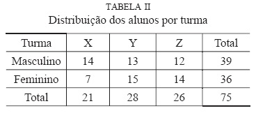 De salientar que, nas turmas Y e Z existiu continuidade pedagógica durante os dois anos de escolaridade do 2.º ciclo, enquanto na turma X, esse facto não se verificou. Importa ainda referir, que os 75 alunos pertencentes a estas três turmas, eram provenientes de quatro turmas distintas do 1.º ciclo, do mesmo agrupamento, mas de escolas distintas.