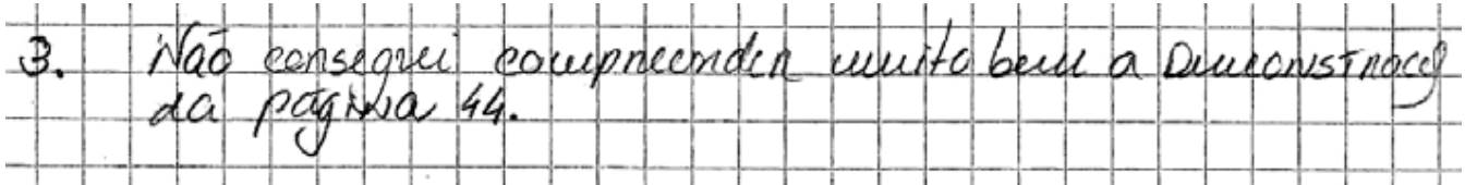 O Pedro escreveu o que apresentamos na Fig. 18 em resposta à questão 3 do TPC 3 (Fig. 2), embora sem especificar o que não tinha compreendido. Uma demonstração foi depois solicitada na forma da tarefa TSPI do Teste 1 (Fig. 5).