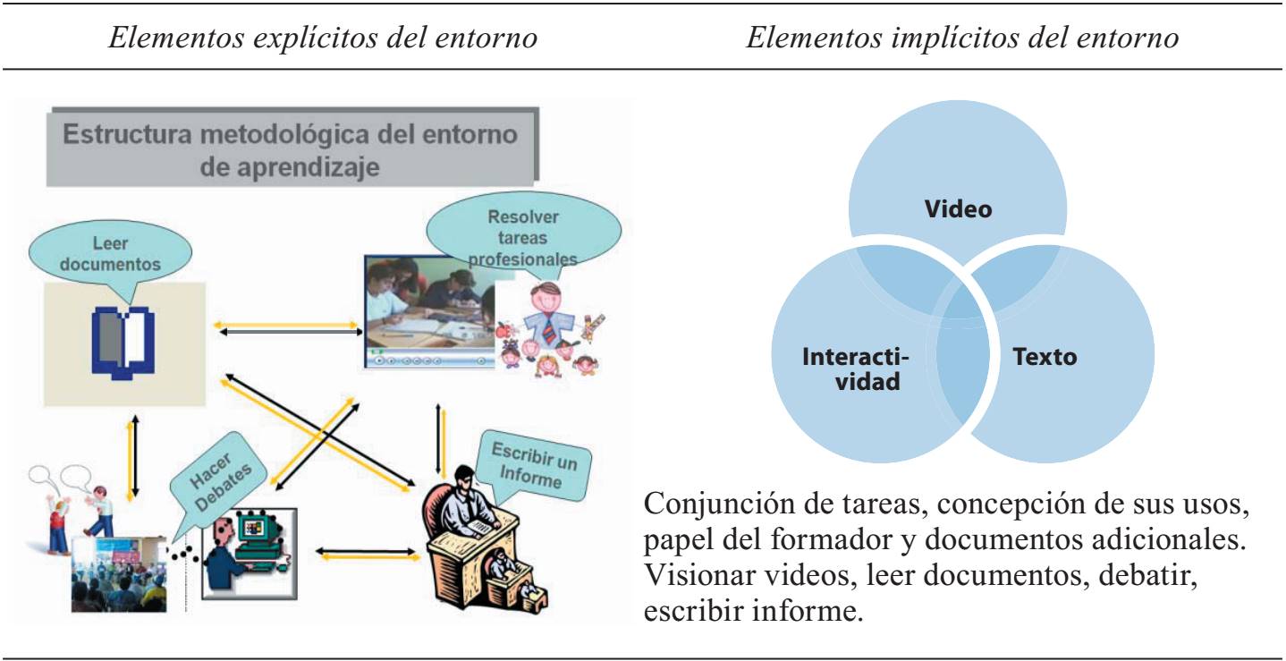 Desde estas perspectivas, se pueden diseñar ambientes de aprendizaje que integran elementos como: registros de la práctica (videos), información teórica que desempeña el papel de instrumentos conceptuales, y la participación en espacios virtuales por parte del estudiante en proceso de formación. Los estudiantes para profesor visionan los videos, creando condiciones para que puedan aprenden a “ver” y a reflexionar sobre situaciones de enseñanza que ocurren en los salones de clase. Tales competencias, requeridas para aprender desde la práctica, deben permitir la interpretación, análisis e identificación de eventos y aspectos que suceden en la enseñanza. En este sentido, el proceso de aprender a enseñar hace referencia a la activación de los procesos constructivos por parte del aprendiz.