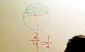 Figura 10 Correção, no quadro, de um problema sobre a equivalência de 12 e 14 na interpretação parte-todo