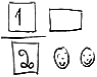 Prof.: A Ana vai comer metade deste chocolate [apontando para o primeiro chocolate]. A Ana vai comer uma parte destas duas partes em que o chocolate foi dividido. Então, se eu quiser colocar aqui um número, qual será [apontando para a primeira metade do primeiro chocolate]?