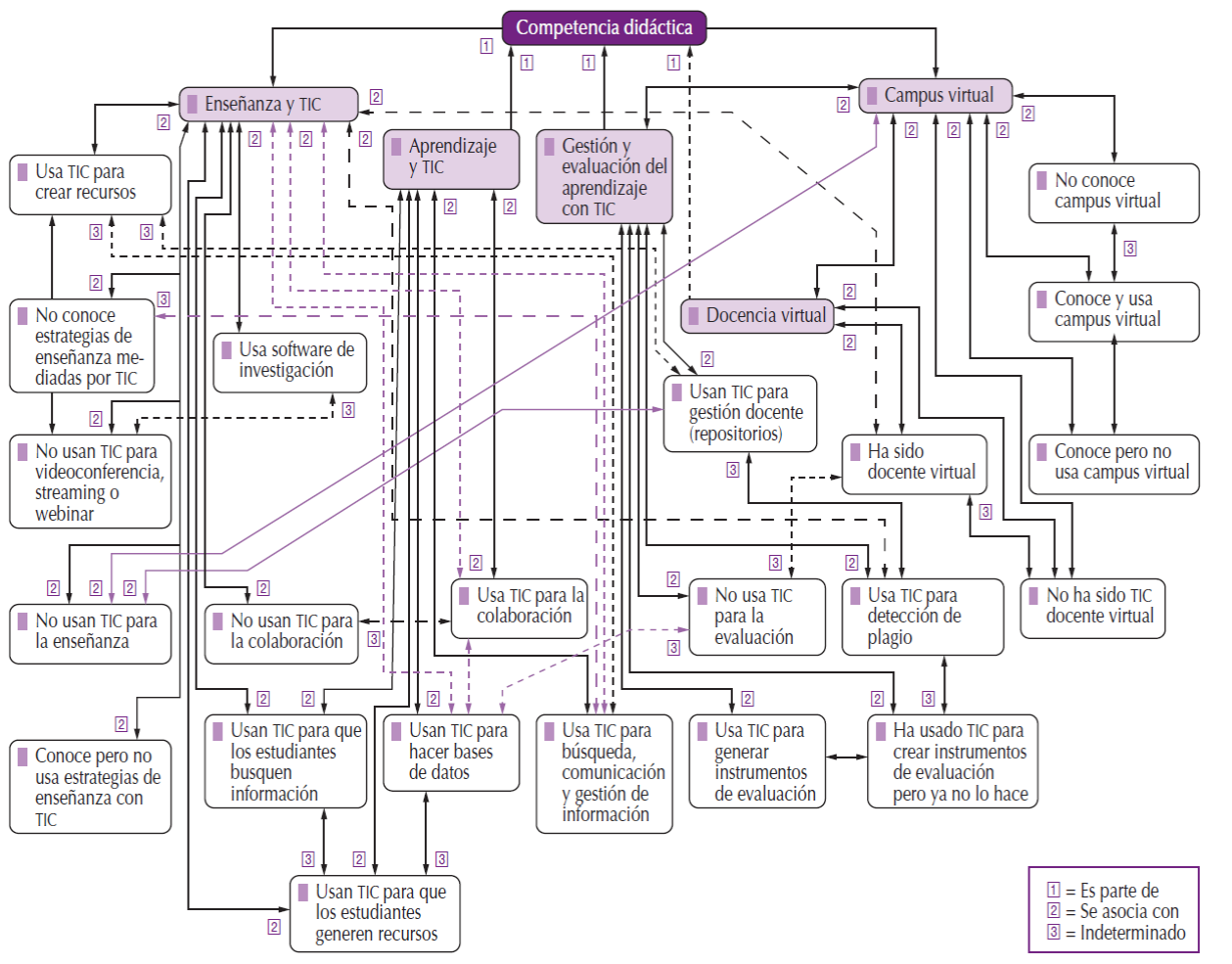 Asimismo, se retoma el modelo de competencia TIC del profesorado universitario de Durán et al. (2016) y Prendes et al. (2018), por ser apropiado para los profesores de nivel superior. En estos modelos se proponen tres niveles de desarrollo. El primero relacionado con habilidades técnicas, el segundo relativo a usos de tecnologías en la práctica educativa, y el tercero vinculado a procesos de reflexión crítica sobre la propia competencia y gestión de procesos de formación permanente y desarrollo profesional, así como sobre el impacto social y cultural de las TIC, particularmente en dimensiones éticas y de seguridad.