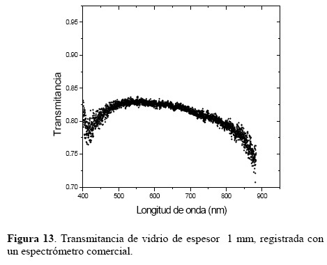 Todas las mediciones realizadas se trataron estadísticamente. La grafica de transmitancia, con la tecnica propuesta, para un vidrio con deposición de una capa diléctrica se muestra en la figura 9.