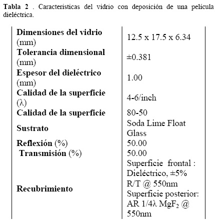 También se hace incidir el haz de laser sobre un vidrio de 6.34 mm de espesor que contiene una capa dielectrica de 1 mm de espesor, ver Tabla 2.