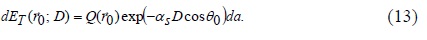 Con ayuda de la Figura 1 se puede demostrar que |r1-r0|-2Rcosθ0-Dcosθ0 , entonces la Ec. (12) va a