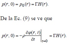 De la Ec. (9), se obtiene la expresión para la presión producida por un impulso de duración δ(t) , está dada por