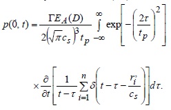 Un pulso corto se modela suponiendo que f (t) =δ(t). La absorción de toda la densidad de energía en un tiempo infinitesimal alrededor de t =0 , genera una presión inicial definida en todo el espacio dada por