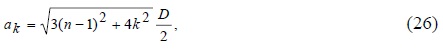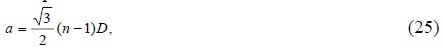 donde n es el número de células que hay desde el centro del arreglo hasta el anillo que se desea observar. De la Ec. (25) y las Figuras 5 se obtiene que la distancia desde el origen hasta la k-ésima células está dada por,