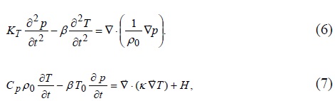 Combinando las Ecs. (2)-(5) se obtiene un conjunto de ecuaciones en derivadas parciales acopladas para la temperatura y presión, a saber.