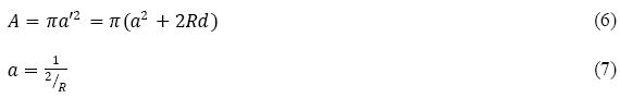where W is the load applied between the sphere and the sample, A is the area of the wear scar or interaction area which is defined by equation (6), v is the volume fraction of the abrasive slurry.